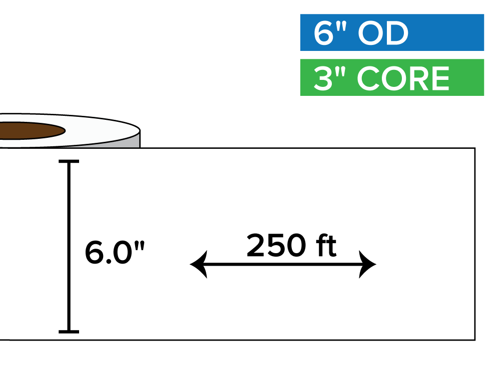 papier blanc mat | 6 po x 250 pi | Noyau de 3 po, diamètre extérieur de 6 po